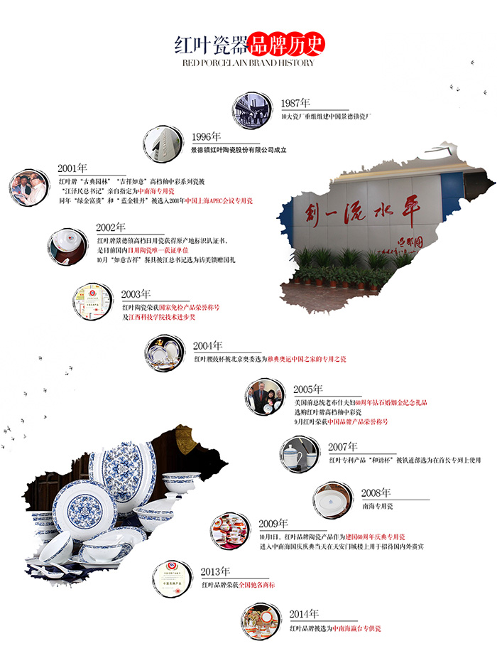 公司于2002年通过ISO9001:2000国际质量体系认证,为拓展国际市场奠定基础。"红叶"牌高档细瓷取得了国家质量监督检验检疫总局颁发的原产地标记注册证书。