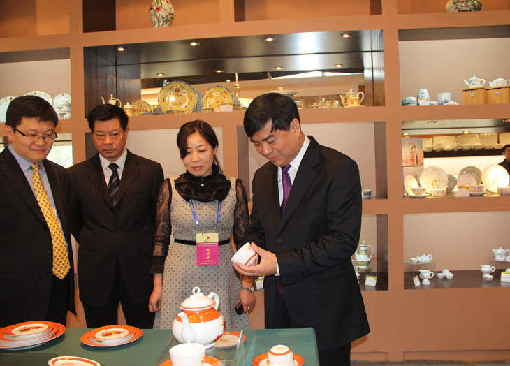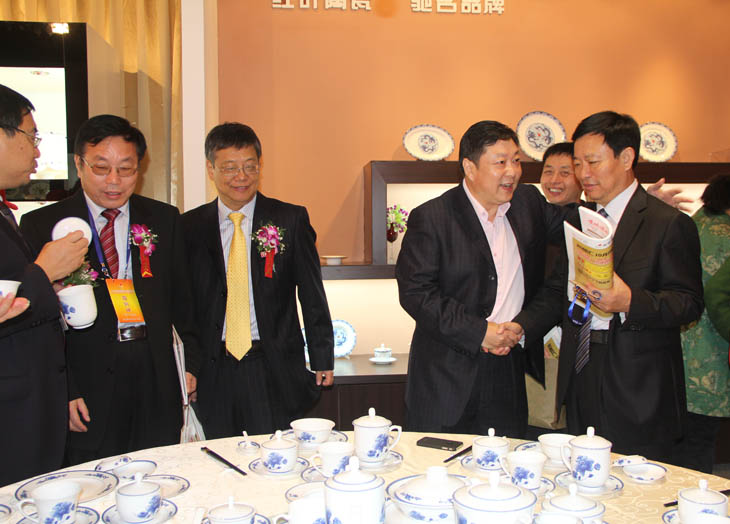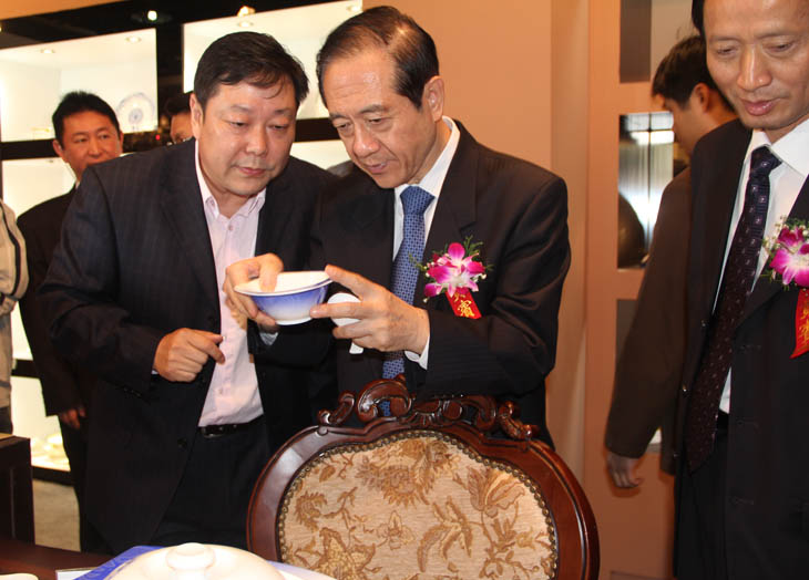全国人大常委会副委员长韩启德在我公司展馆参观,对我公司在全国青花玲珑及青花日用完美网页版-完美(中国)官方