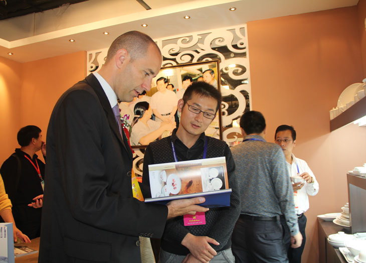 一位瓷博会邀请的外国贵宾在参观完我们的展馆后,对我公司的产品非常感兴趣,表示有意向合作,领取了公司的产品画册