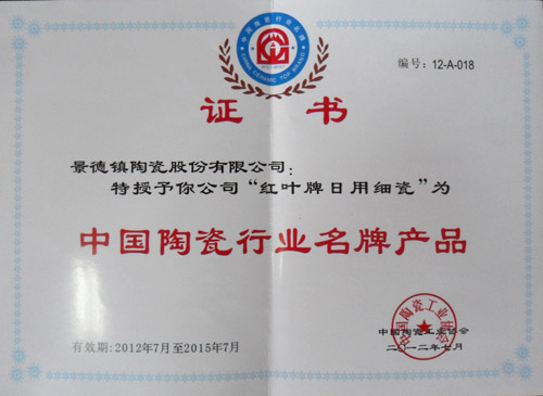 中国完美网页版-完美(中国)官方 工业协会于今年2月份开展了第五批中国完美网页版-完美(中国)官方 行业名牌产品的推荐评审及复评工作。经过企业自愿申请、资料审查、专家评审、组委会领导小组审查、公示等一系列细致的工作,最终评选出了2012年“中国完美网页版-完美(中国)官方 行业名牌产品”。公司生产的“红叶”牌日用完美网页版-完美(中国)官方 再次被评为“中国完美网页版-完美(中国)官方 行业名牌产品”。