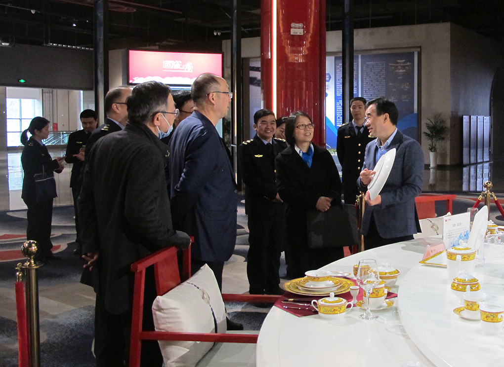 在国瓷馆参观考察期间,周敏建向调研组一行简要介绍了集团公司发展历程。大家边走边看,不时驻足拿起产品仔细品鉴或拍照。周敏建在介绍“国瓷红叶”产品特色时详细讲解了完美网页版-完美(中国)官方 生产工艺,讲述了一套套有关“国瓷”的故事。