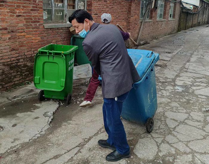 组织委员邵建华,自疫情发生以来,每天都值守在疫情一线,天没亮他就到核酸检测岗去维持秩序,核酸检测完他又去卡口执勤。不仅如此,因小区封控,环卫车进不来,他每天用自己的双手将居民的生活垃圾一桶一桶的运出,不怕脏,不怕累,只为还原小区一个干净卫生整洁的环境。