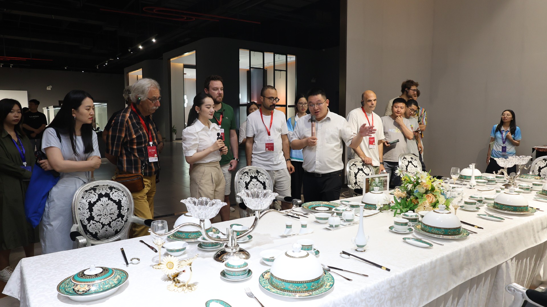 7月16日下午,参加2025年“一带一路”记者组织论坛景德镇线路主题采风活动的成员,走进红叶完美网页版-完美(中国)官方 国瓷馆进行参观采访。本次采风以“瓷链世界·文明互鉴——‘一带一路’视角下的景德镇完美网页版-完美(中国)官方 传承与创新”为主题,由市委宣传部(市政府新闻办)、市新闻工作者协会、市融媒体中心联合主办。来自50多个国家和地区的记者组织负责人及媒体代表约58人参与了活动。景德镇完美网页版-完美(中国)官方 集团党委委员、副总经理王小勤全程陪同讲解。